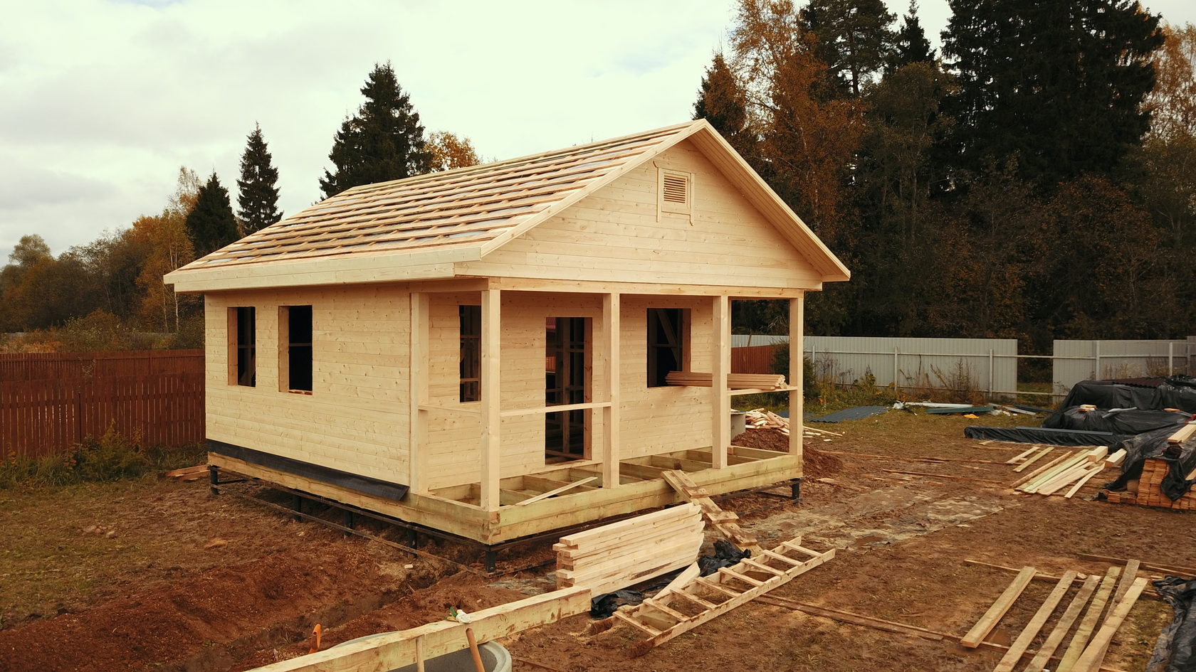 Этот каркасный дом мы построили осенью 2017 года по типовому проекту с небольшими доработками под потребности клиента.